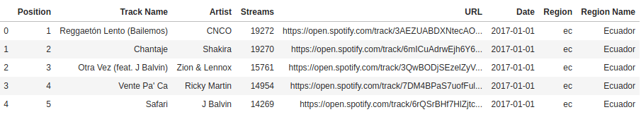 We also enriched the Spotify dataset with the actual country names(Region Name) instead of the country codes using the country ISO codes.