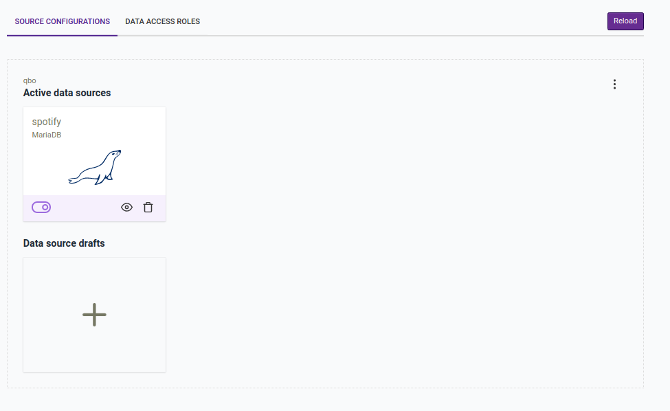 After doing the necessary configurations, make sure to save and activate the data source draft. The newly setup data source will be shown in the main page of Data Sources section as shown below. Also, here make sure to press reload and you are good to go!
