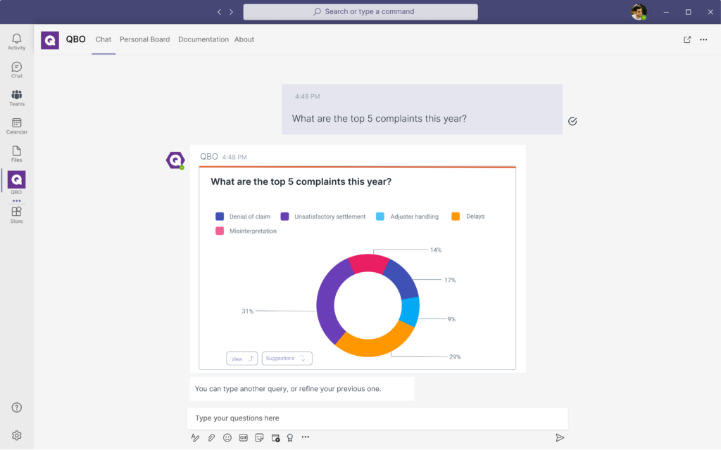 “What are the top five most frequent complaints our customers have when calling our hotline?” “What is the average time to claims for our accident policies over the last 12 months?” “How are customers paying for their premiums?”