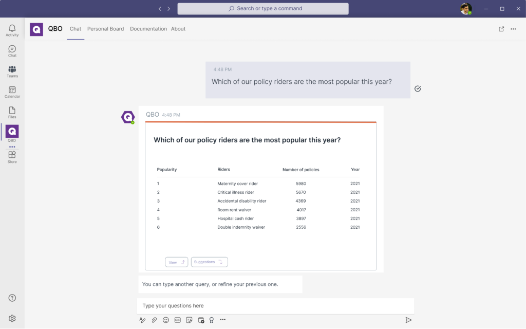 With business intelligence powered by conversational analytics, insurers can ask questions directly to their data such as: