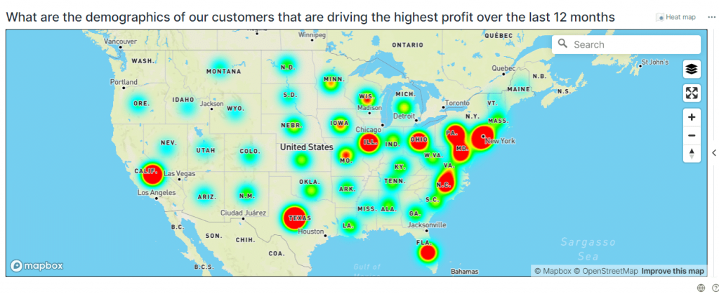“What are the demographics of our customers that are driving the highest profit over the last 12 months?” or “Which type of customers should we be targeting to lower our cost of acquisition?”
