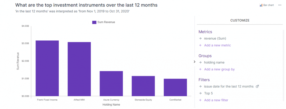 “ What are the investment instruments that show the most revenue growth in the last 12 months?”