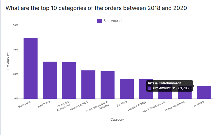 You can simply ask hyper-specific questions such as “Which products are the top bestsellers from 2018 to 2020?”